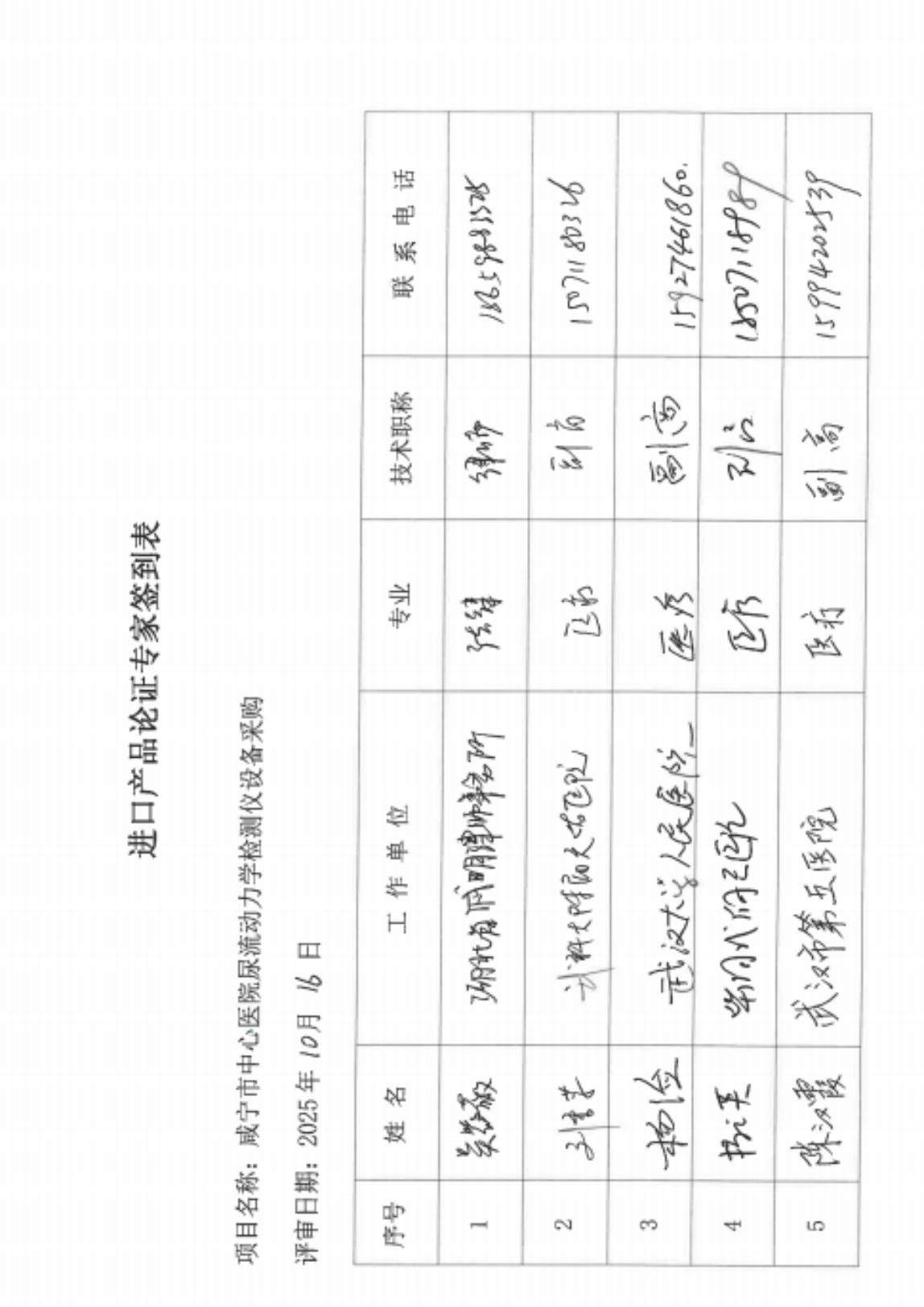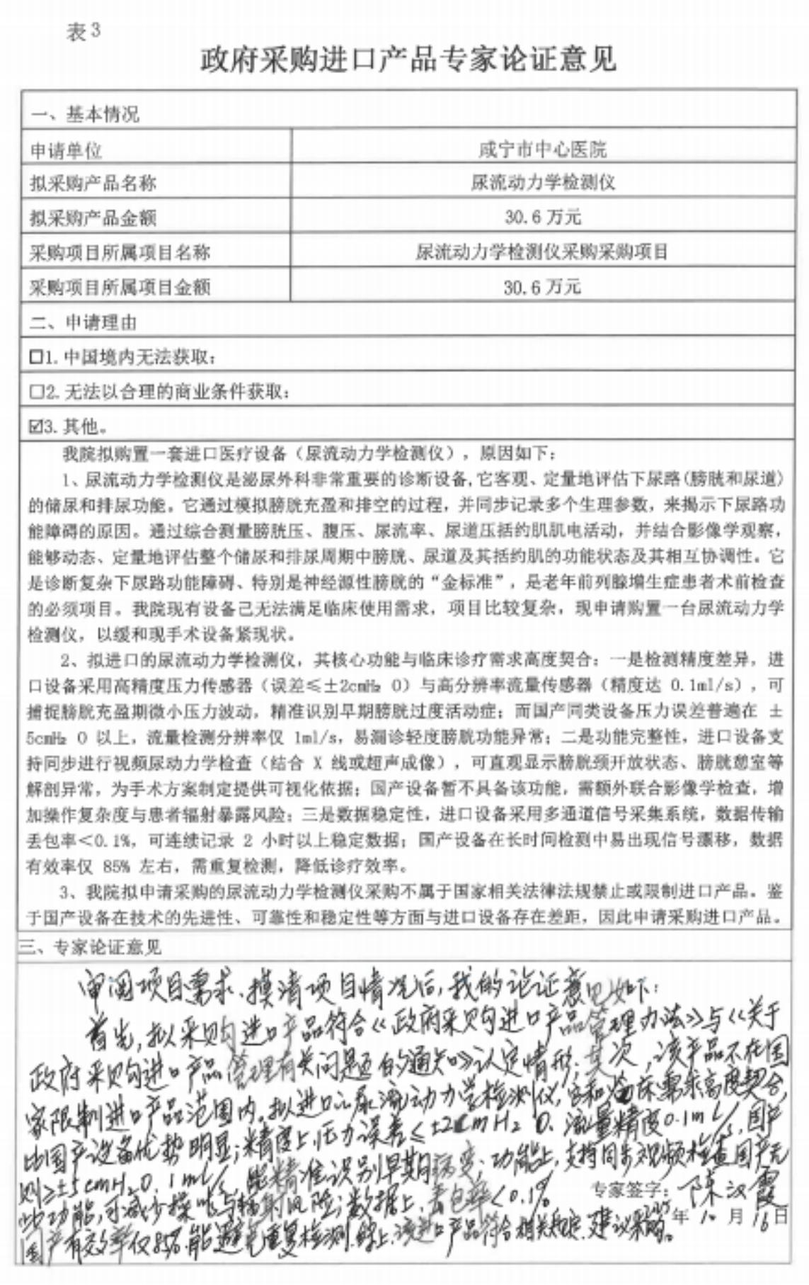 (001)咸宁市中心医院尿流动力学检测仪采购项目进口产品论证公示;
