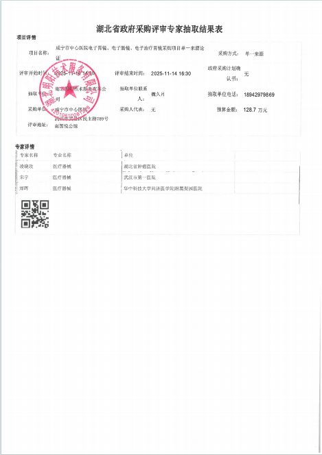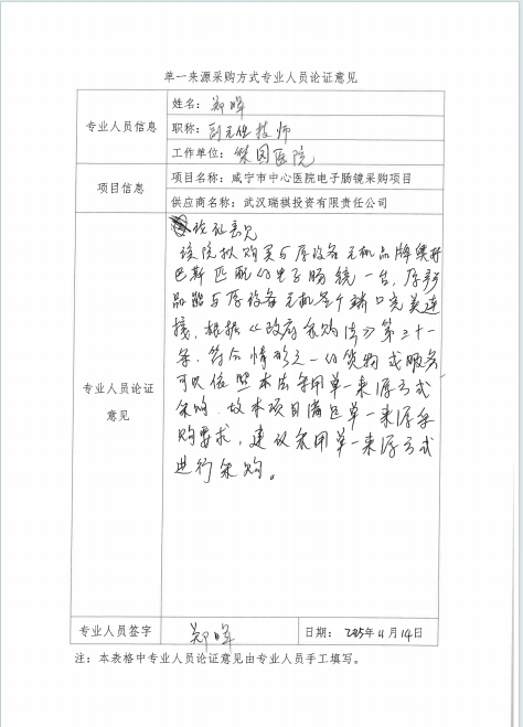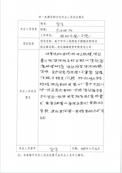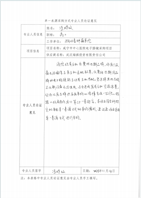 咸宁市中心医院电子胃镜、电子肠镜、电子肠镜采购项目单一来源论证