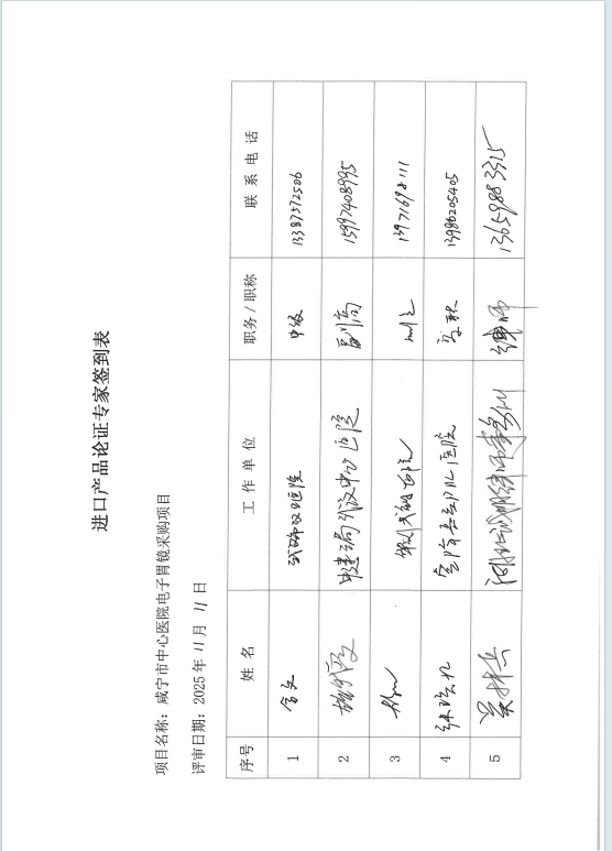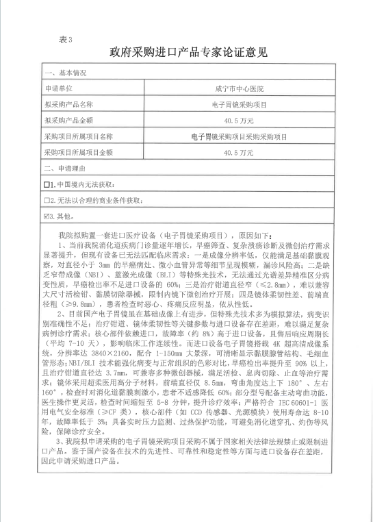 成宁市中心医院电子胃镜采购项目进口论证