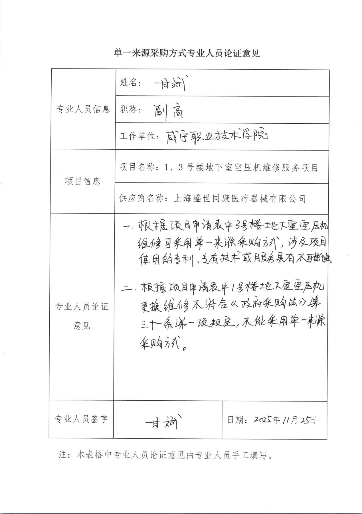 咸宁市中心医院3号楼地下室空压机维修单一来源论证公示